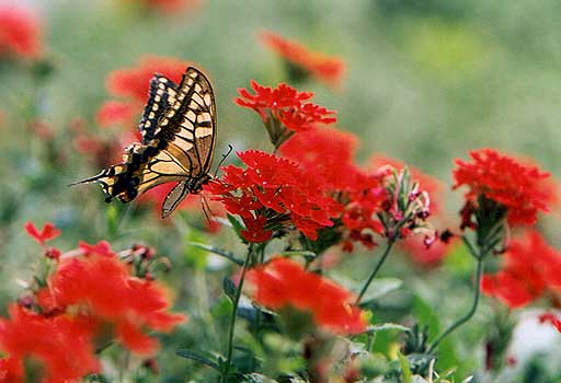 キアゲハは常に羽を動かしながらバーべナの蜜を吸って 次から次へ花を移動していくので 結構フレーミングが難しかったです。 もう少し寄りたかったのですが、夏の日差しに息切れ、約10分間の格闘でした。