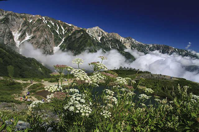 8月上旬に八方尾根を訪れると、ミヤマトウキの大群落に迎えられた。