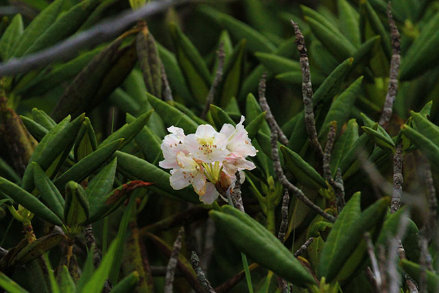 白根山では山頂の手前にハクサンシャクナゲの茂みを見ることができた。