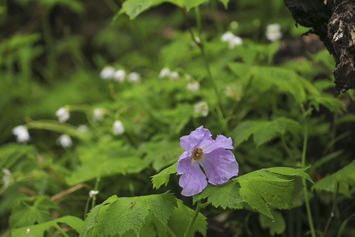 脇を見れば、シラネアオイはもちろんのこと、ニリンソウなど春の山野草の宝庫だ。