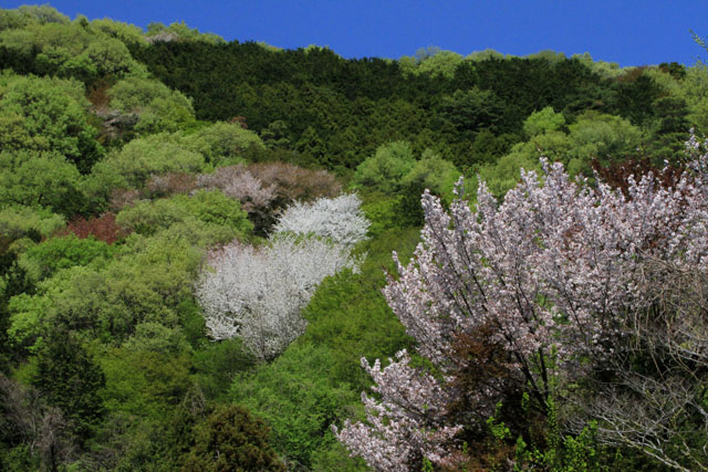 ソメイヨシノの花後、樹々の芽吹きと一緒に、山全体にサクラが咲く。